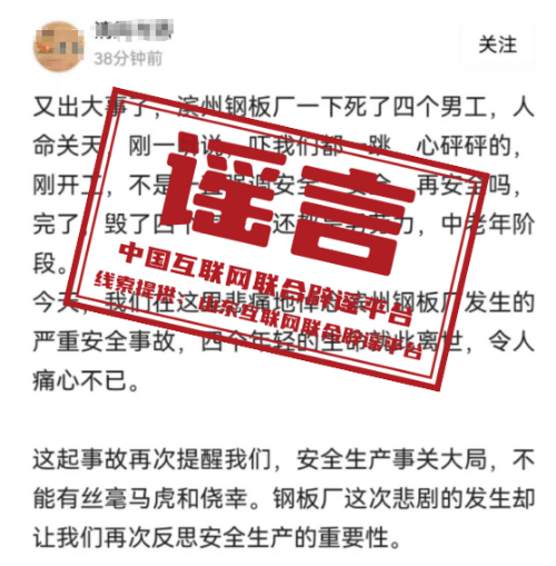 ??謠言:山東濱州鋼板廠發(fā)生安全事故死了四個工人?