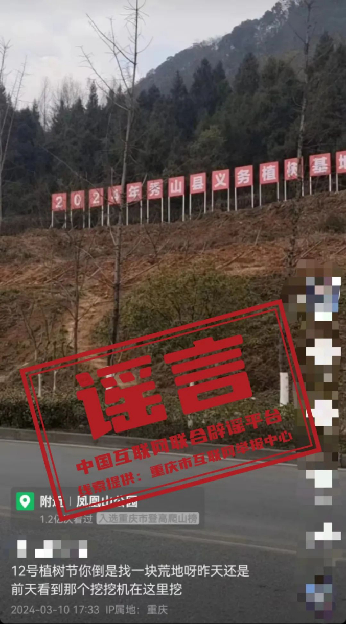 ??謠言:重慶市秀山縣鳳凰山公園把原有樹木挖了來辦植樹節(jié)?