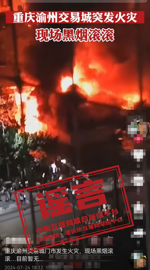 ??謠言:重慶渝州交易城突發(fā)火災(zāi)?